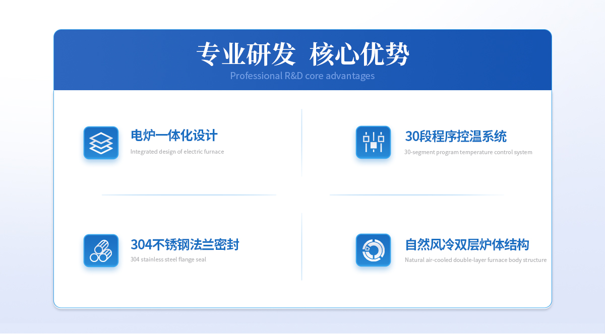 | 1、爐膛采用優(yōu)質(zhì)氧化鋁纖維材料,保溫性能好,耐用,拉伸強(qiáng)度高,無雜球,純度高,節(jié)能效果明顯; | 2、加熱元件采用優(yōu)質(zhì)HRE電阻絲,大大提高了其使用壽命; | 3、超溫報(bào)警,漏電保護(hù),操作安全可靠。 |