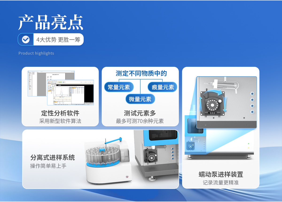 1、進(jìn)樣系統(tǒng) 1.1 加長型霧室,保證高靈敏度的情況下有效降低背景噪聲,低記憶效應(yīng)。 1.2 **同心圓霧化器,霧化效率高、重復(fù)性好,記憶效應(yīng)弱,可直接自吸進(jìn)樣。 1.3 快速拆卸式炬管,搭配自主研發(fā)的炬管工裝,可一秒實現(xiàn)炬管的準(zhǔn)確定位,減少因更換 炬管帶來的位置誤差影響測試性能。 1.4 蠕動泵為 5 通道 16 滾軸全自動設(shè)計,蠕動泵轉(zhuǎn)速連續(xù)可調(diào)。確保穩(wěn)定進(jìn)樣的同時,可 支持進(jìn)樣、排廢、在線內(nèi)標(biāo)和其他試劑進(jìn)樣管(氫化物發(fā)生器)同時運(yùn)行。 1.5 分腔體式進(jìn)樣系統(tǒng),炬管和霧室在不同的空間內(nèi),減少炬管高溫對霧化的影響,也可以 直接觀察樣品的進(jìn)行,便于實時排除異常情況。 1.6 多種類型的霧化器、霧室及炬管可選,可實現(xiàn)有機(jī)、高鹽、高靈敏、耐 HF 酸等不同進(jìn) 樣需求,方便更換與維護(hù)。 1.7 集成氣路全自動控制,采用精密質(zhì)量流量控制器控制多路氣體流量,精度 0.01L/min。 1.8 缺氣氣保護(hù)功能,儀器在氣源耗盡的情況下自動熄火,并通過嗡鳴器實時發(fā)出報警聲音。 1.9 火焰視頻監(jiān)測,儀器配置了靈敏度高的火焰?zhèn)鞲邢到y(tǒng),以及可視化視頻監(jiān)測攝像頭, 可以實時觀測燃燒室火焰狀態(tài),并在熄火時自動關(guān)閉射頻電源,保護(hù)儀器重要部件。 1.10 可視化的儀器運(yùn)行狀態(tài)監(jiān)控模塊,可對儀器各組成部件的運(yùn)行情況進(jìn)行監(jiān)測,判斷故 障原因,便于各部件的正常運(yùn)行。