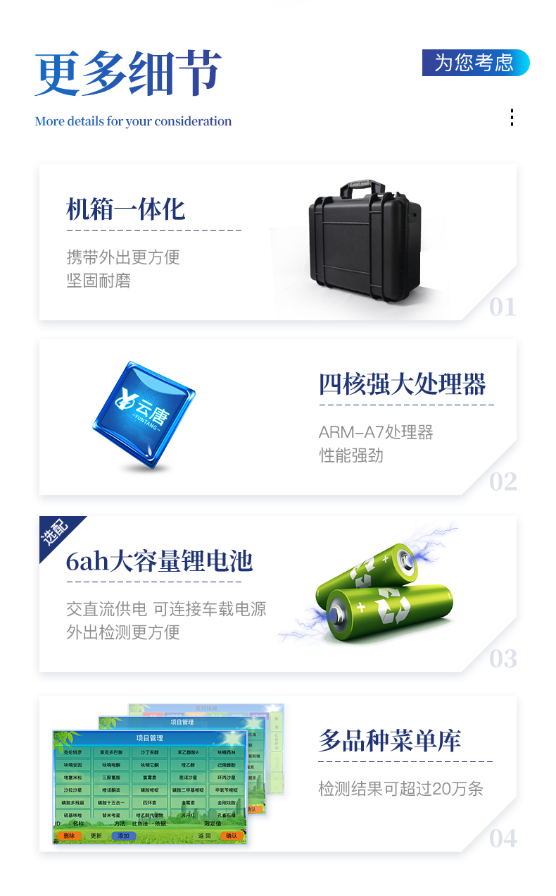 廣泛應(yīng)用于主要用于蔬菜、水果、茶葉、糧食、農(nóng)副產(chǎn)品等食品中有機(jī)磷和氨基甲酸酯類農(nóng)藥殘留的快速檢測;此外還可用于果蔬茶生產(chǎn)基地和農(nóng)貿(mào)批發(fā)銷售市場現(xiàn)場檢測,餐館、學(xué)校、食堂、家庭果蔬加工前的安全速測等。