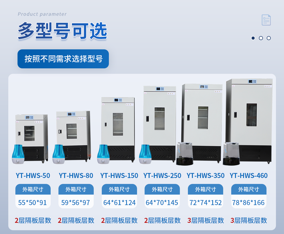| 工作容積:250L | 箱內(nèi)照明:日光燈 | 控溫范圍:0-70℃(設(shè)定溫度≤10℃時(shí)環(huán)境溫度要低于30℃) | 程序控制:24段 | 溫度分辨率:0.1℃ | 溫度波動度:±0.5℃ | 控濕范圍:30%-95% | 定時(shí)范圍:0-99小時(shí)59分鐘 | 加熱功率:900W | 內(nèi)箱尺寸 寬*深*高(cm):51*48*96 | 外箱尺寸 寬*深*高(cm):64*70*152 | 隔板層數(shù)(標(biāo)配):2層 | 層間隔/mm:36 | 卡槽層數(shù):13 | 加濕器容量(標(biāo)配):3L | 單層隔板承重:<15kg | 底部總承重:30kg | 電壓:AC220V 50HZ | 整機(jī)重量:96kg | 內(nèi)膽材質(zhì):不銹鋼材質(zhì) | 箱體材質(zhì):冷軋鋼板表面采用抗腐蝕高溫噴塑工藝 |