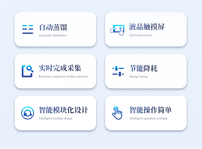 智能一體化蒸餾儀采用智能模塊化設(shè)計(jì):方法自定義設(shè)置保存/讀取、開(kāi)機(jī)自動(dòng)調(diào)取使用,冷凝單元特殊定制蛇形冷凝管、智能終點(diǎn)控制防過(guò)量蒸餾、防倒吸保護(hù),防干燒保護(hù)、實(shí)現(xiàn)了智能操作簡(jiǎn)單、自動(dòng)蒸餾、美觀實(shí)用、節(jié)能降耗、節(jié)省人工的同時(shí)為用戶做樣提**率節(jié)約人員成本開(kāi)銷。