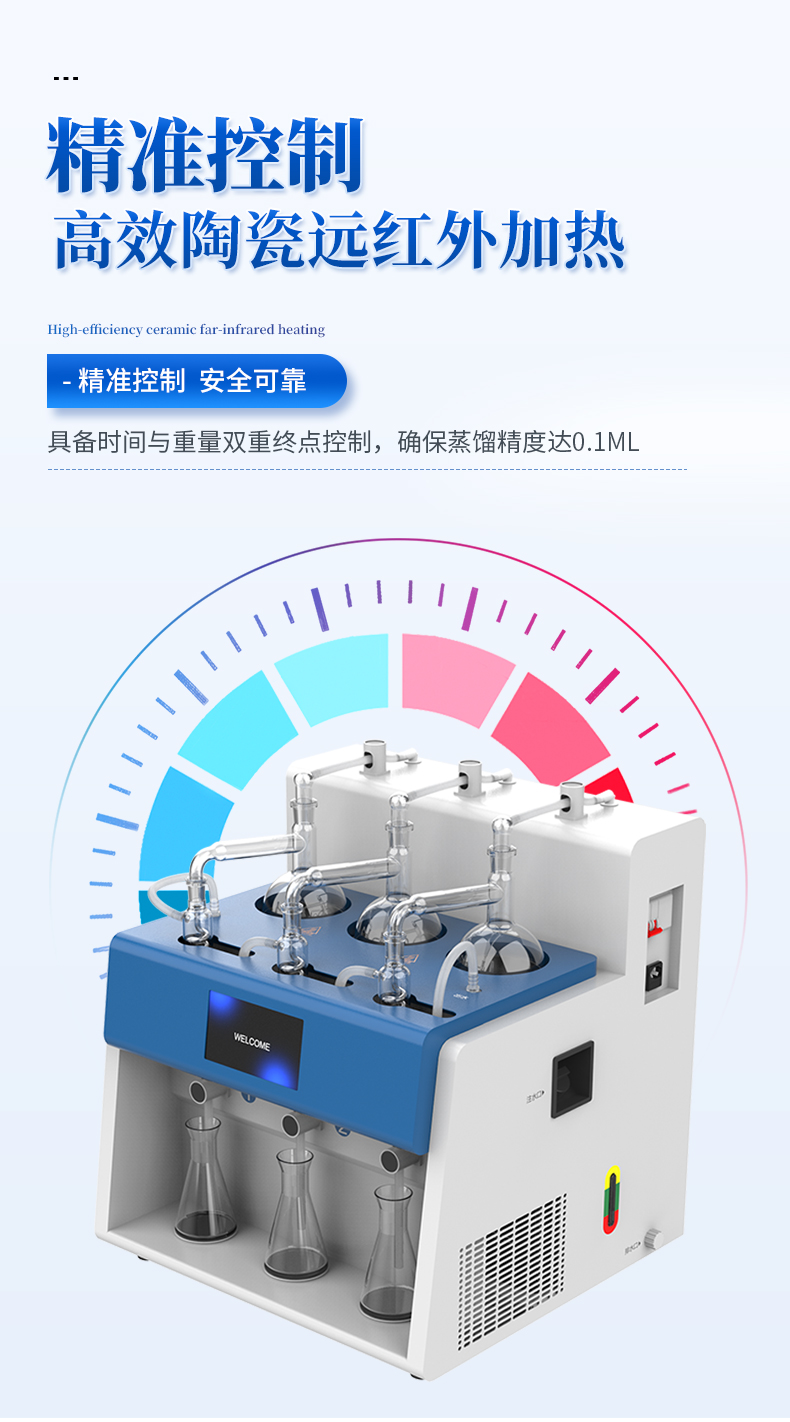 各級(jí)實(shí)驗(yàn)室的前處理實(shí)驗(yàn)過(guò)程中,蒸餾實(shí)驗(yàn)是非常常見(jiàn)且又非常重要的一項(xiàng)前處理步驟。但傳統(tǒng)的蒸餾裝置由于加熱,冷凝,接收等裝置部分結(jié)構(gòu)獨(dú)立,操作繁瑣,效率較低,故障率高,蒸餾過(guò)程中加熱溫度不易控制,終點(diǎn)無(wú)法自動(dòng)判斷停止,餾出液易倒吸,相應(yīng)帶來(lái)平行性差,回收率低等直接影響實(shí)驗(yàn)結(jié)果的現(xiàn)象等各種弊端。