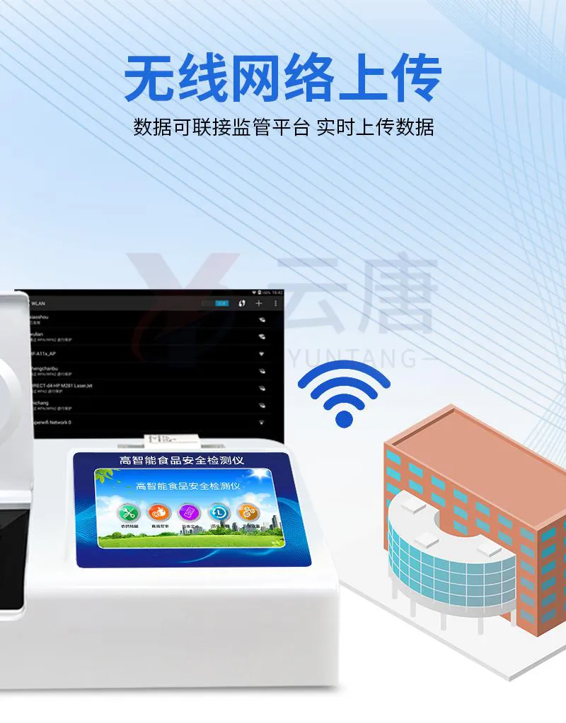 8、儀器帶有監(jiān)管平臺(tái)。數(shù)據(jù)可局域網(wǎng)和互聯(lián)網(wǎng)數(shù)據(jù)上傳,檢測(cè)結(jié)果直接傳至食品安全監(jiān)管平臺(tái)。進(jìn)行區(qū)域食品安全監(jiān)管及大數(shù)據(jù)分析處理,檢測(cè)區(qū)域食品安全長(zhǎng)短期動(dòng)態(tài),達(dá)到食品安全問(wèn)題預(yù)估、預(yù)警