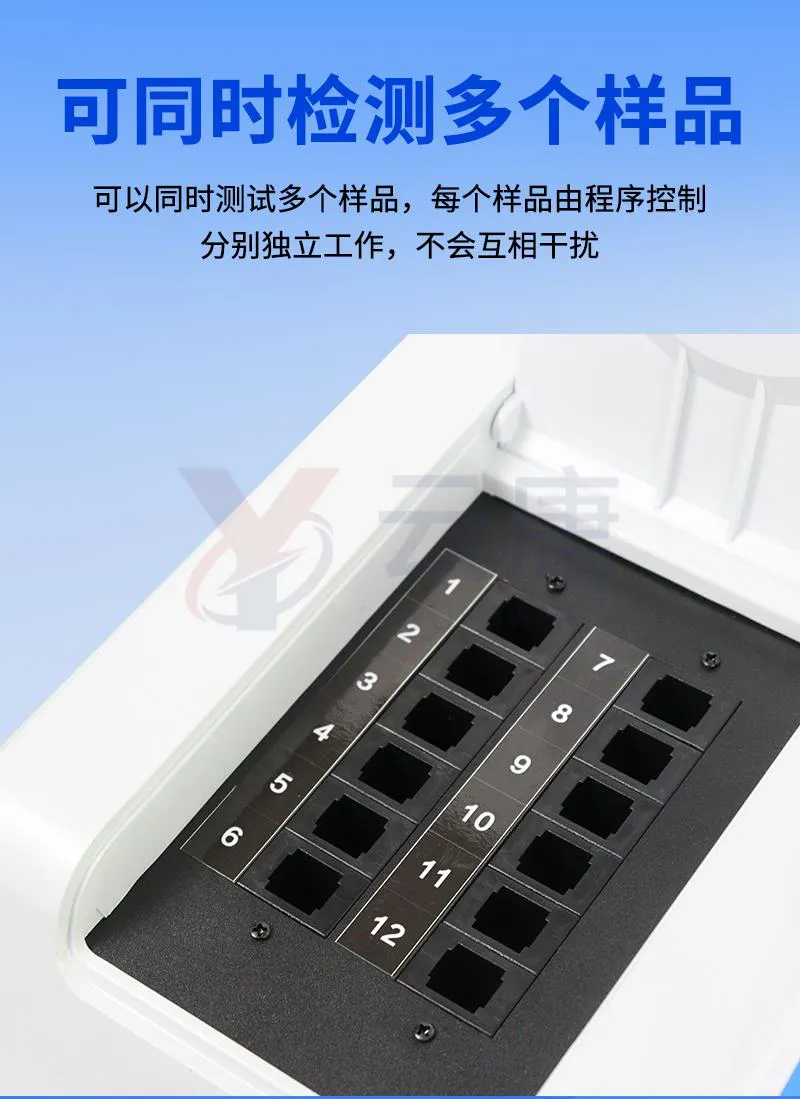 3、檢測(cè)通道:≥12個(gè)檢測(cè)通道,可以同時(shí)測(cè)試多個(gè)樣品,每個(gè)樣品由程序控制分別獨(dú)立工作,不會(huì)互相干擾。