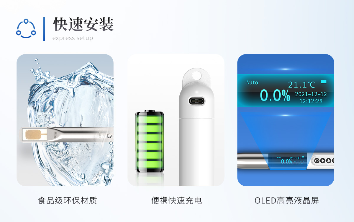 ■沒有二次污染 探頭所選材質(zhì)均為食品級環(huán)保材質(zhì),不會產(chǎn)生二次污染。