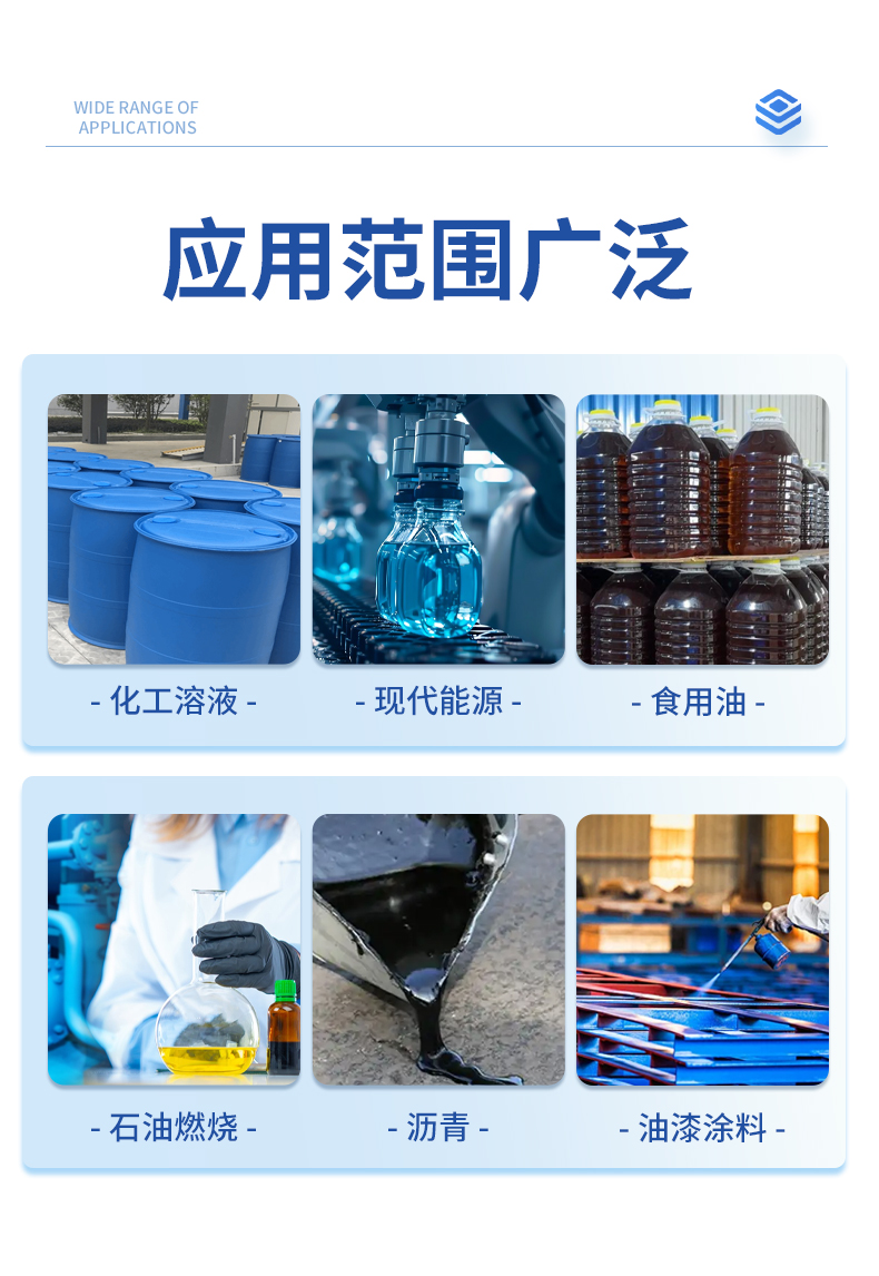 | 化工溶液、化工助劑、現(xiàn)代能源、石油燃燒、藥劑、油漆涂料、瀝青、食用油等各種液體、研究實驗室。 |