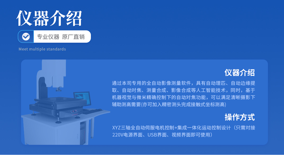 | 儀器基座 精磨高精度高穩(wěn)定性硬質(zhì)鑄鋁 1套 | CCD 700TVL模擬信號高清彩色CCD(COMST) 1個 | 鏡頭 0.7~4.5 X連續(xù)變焦鏡頭 1個 | 光柵尺 高精度位移傳感電子尺,分辨率:1μm (精微) 2條 | 導(dǎo)軌 咸陽藍(lán)博P級精密交叉導(dǎo)軌(LB) 3組 | 傳動 西德無牙光桿精密傳動(西德) 3條 | 表面光源 LED恒流環(huán)形驅(qū)動光源 (兩環(huán)一區(qū)) 1個 | 底光源 LED白色恒流底光源 1PCS | 數(shù)據(jù)采集卡 DC3000 1PCS | 視頻采集卡 視頻采集卡 1PCS | 影像測量軟件 DTV 2.5T手動影像測量軟件 1套 | 光學(xué)校正片 DTV 定制 1塊 | 電壓 AC :100-240V(全電壓) 1個 |