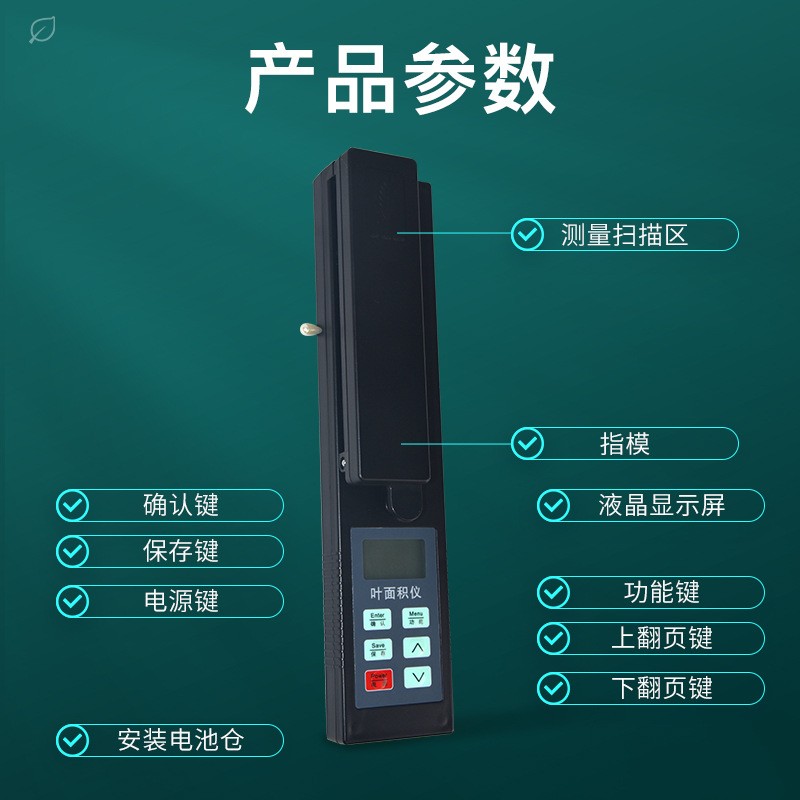 5)可存儲(chǔ)250組數(shù)據(jù)(葉面積、葉長(zhǎng)、葉寬)。